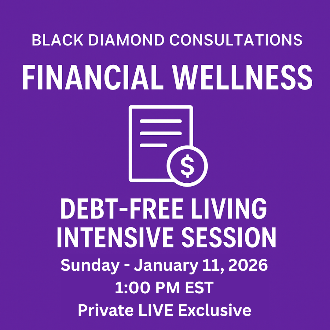 DISCLAIMER: Black Diamond Consultations LLC, led by L’erin Gaines, provides educational content, coaching, and resources focused on Debt-Free Living through Spiritual, Mental, Physical, and Financial well-being. All information and services are provided for educational and personal development purposes only and do not constitute financial, legal, tax, investment, medical, or therapeutic advice. Black Diamond Consultations LLC is not a financial advisory firm. Individual results vary, and all decisions, actions, and outcomes remain the responsibility of the participant.